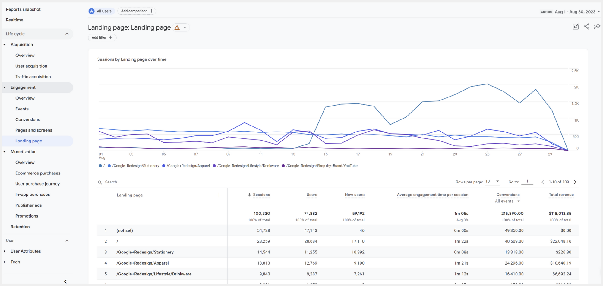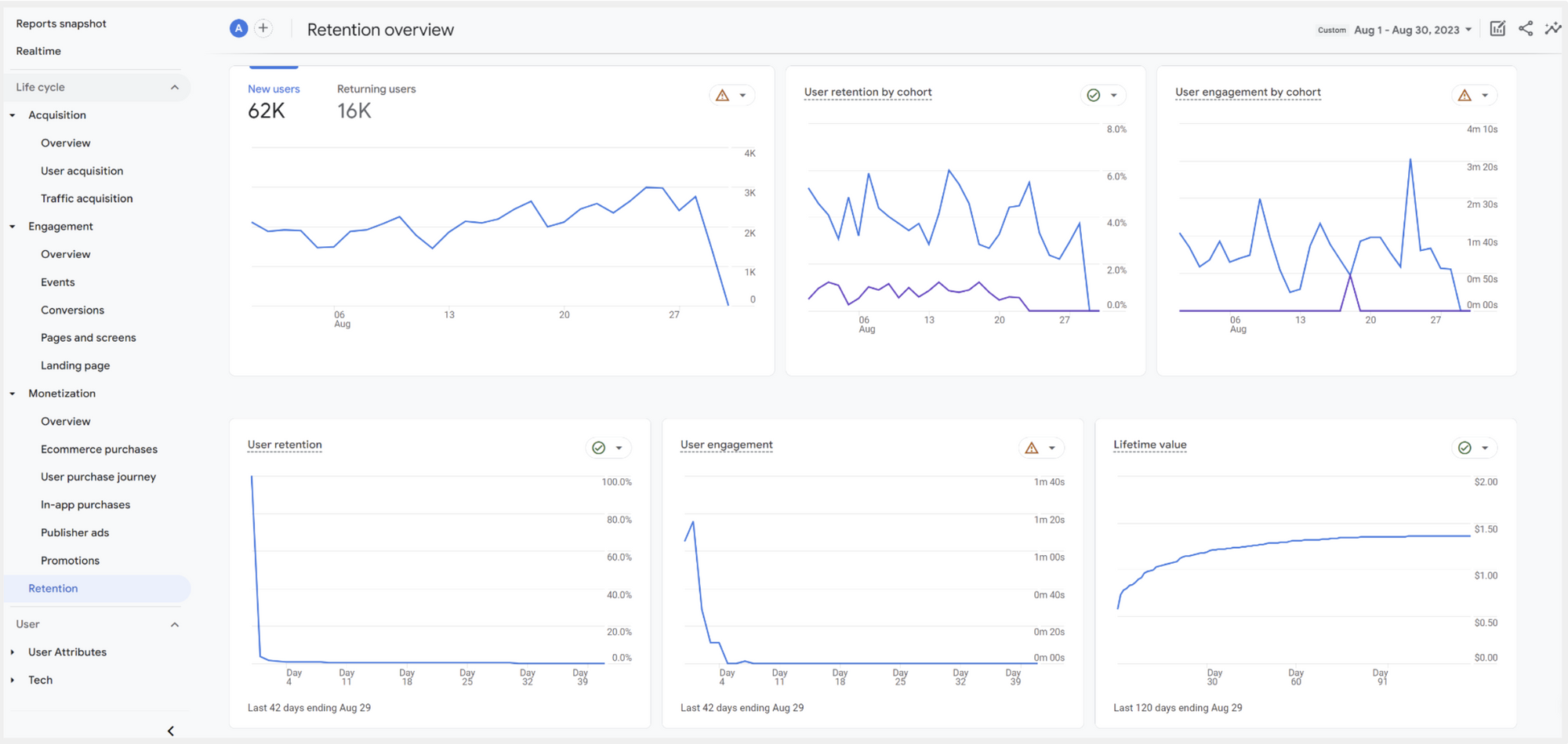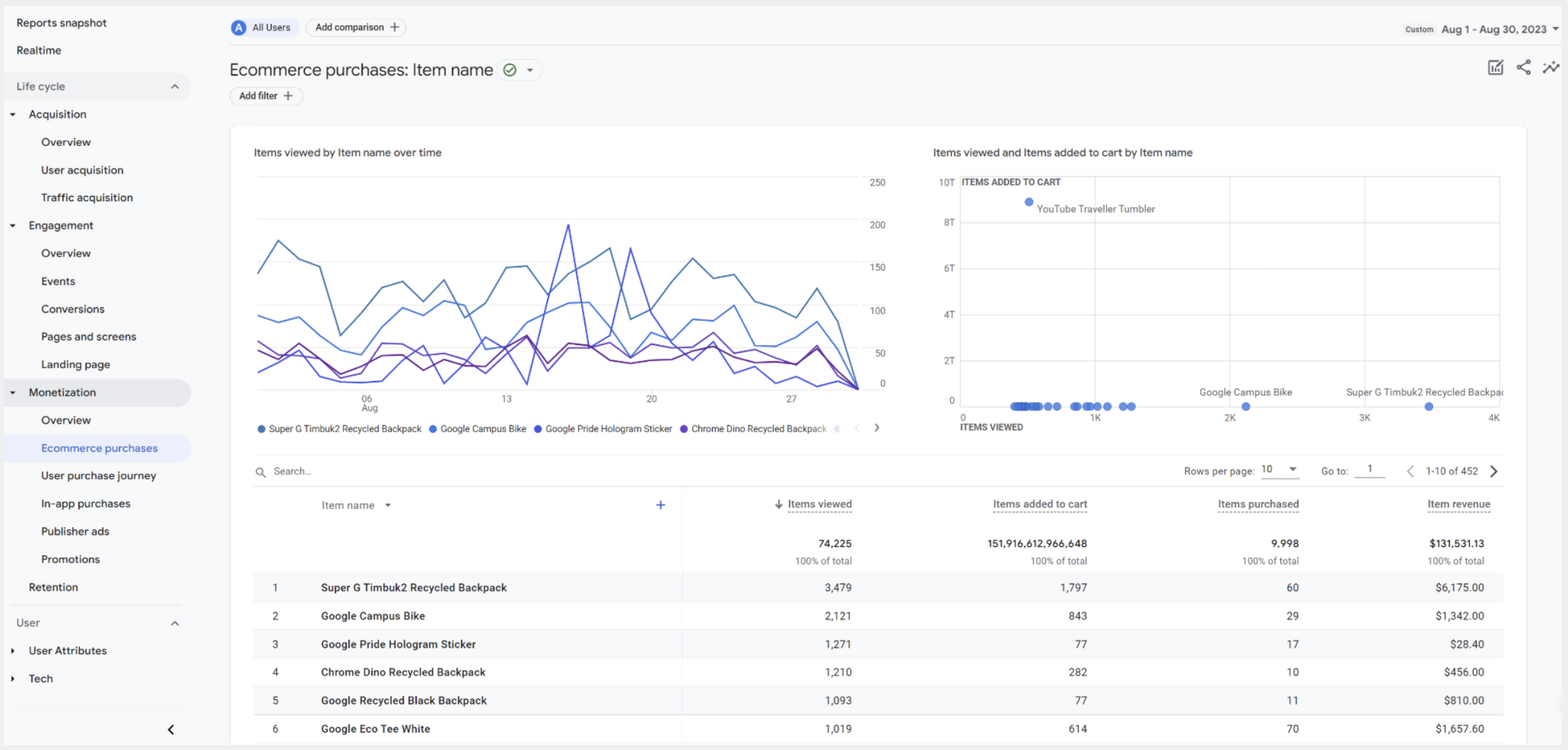 Monetization and Retention เป็น Report ที่ช่วยวัดผลการซื้อขายสินค้าบน Website เหมาะกับ Website ที่เป็น E-Commerce หรือ Marketplace นอกจากการซื้อสินค้าแล้วยังวัดผล In-app Purchases สำหรับ Application ได้อีกด้วย