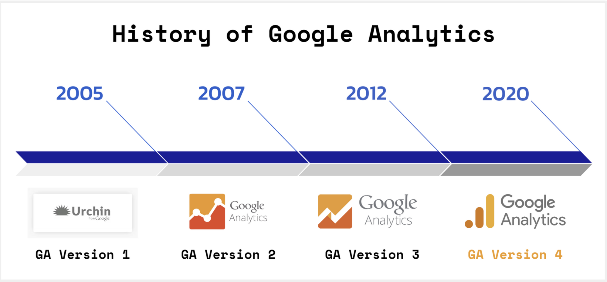 รู้หรือไม่ว่าที่จริงแล้วเลข 4 ของ GA4 มาจาก Version ของเจ้า Google Analytics ที่ฝ่ามรสุมผ่านร้อนผ่านหนาวเดินทางตั้งแต่ Version ที่ 1 จนมาถึง Version ที่ 4 ในปี 2020