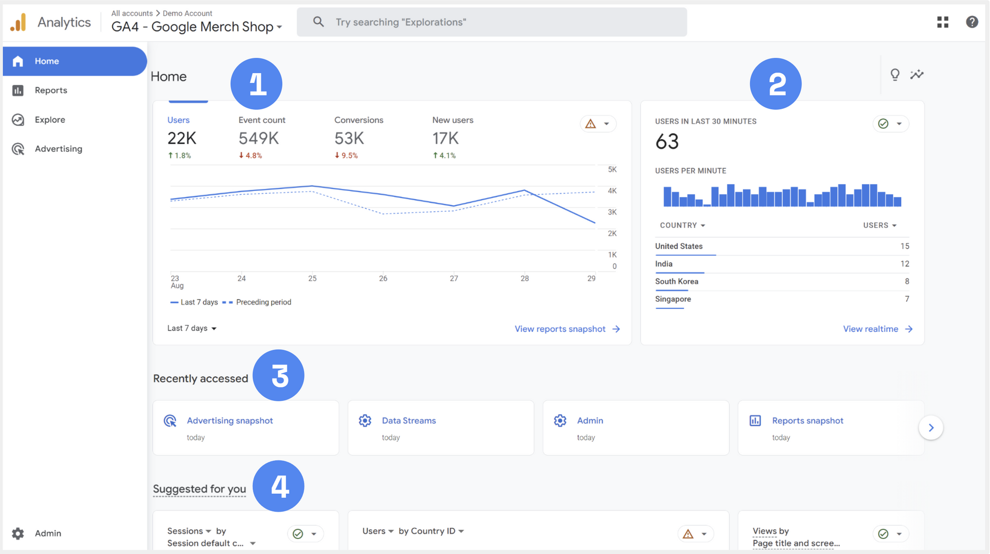 แสดงผลข้อมูลที่ทาง Google Analytics (GA4) แนะนำขึ้นมา เช่น